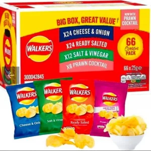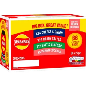Walkers Variety Box Crisps 66 x 25g 24 x 25g - Cheese & Onion 24 x 25g - Ready Salted 12 x 25g - Salt & Vinegar 6 x 25g - Prawn Cocktail