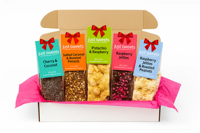 Indulge in the perfect blend of sweetness with our Nougat Mystery Box, featuring one bag of the nougat Rocky Road alongside delicious Nougat bars. This curated selection offers a delightful mix of creamy, chewy, and crunchy textures that satisfy every craving. Whether for sharing or treating yourself, this box brings together timeless flavours in a convenient and irresistible package. Discover your new favourite sweet escape with every bite.