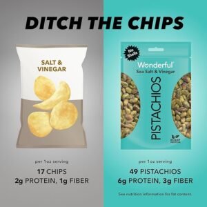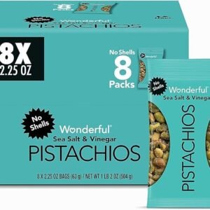 Wonderful Pistachios No Shells, Sea Salt & Vinegar Flavored Nuts, 2.25 Ounce Bag (Pack of 8), Protein Snacks, Gluten Free Snacks for Adults
